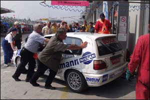 約1時間おきに行われるピット作業は、日本で見られないような光景。通常耐久レースではガスチャージはクイックチャージャーという給油装置を用いるのだが、ここニュルではガソリンスタンドで見受けられるピストル式のノズルを使用する。しかもひとつのピットに6台ほどの車両がひしめき合っているわけだが、給油のノズルはピットにひとつしかなく、これの使用権は早い者勝ちというルール。しかし給油がバッティングしてもたいして慌てるわけでもなく、もちろん給油装置の奪い合いなどもなく、非常に大らかな作業が行われている。