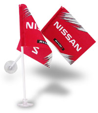 タテにもヨコにもレイアウトできるミニフラッグ。車の窓ガラスにも机の上にも飾れます。