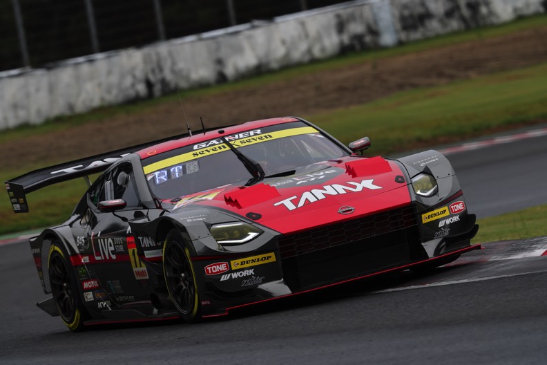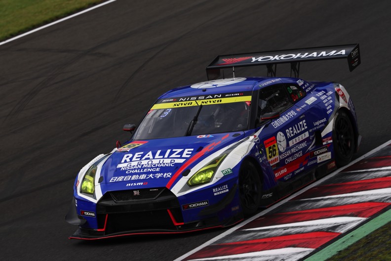 9月20日(土)、曇り空のもとで予選セッションがスタートしました。GT300クラスの予選Q1は、エントラントがふたつのグループに振り分けられ、各組の上位9台ずつが予選Q2に進出する方式です。#56 リアライズ日産メカニックチャレンジ GT-R(ジョアオ・パオロ・デ・オリベイラ/平手晃平)と#360 RUNUP RIVAUX GT-R(青木孝行/荒川麟)の2台がA組から、#11 GAINER TANAX Z(富田竜一郎/大木一輝)、#48 脱毛ケーズフロンティアGO&FUN猫猫GT-R(井田太陽/柴田優作)、#62 HELM MOTORSPORTS GT-R(平木湧也/平木玲次)の3台がB組から出走しました。
