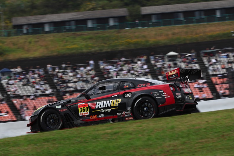 10月18日(土)、不安定な天候のもと、予選セッションが行われました。小雨ながらドライ路面で始まったセッションは、途中からコースが濡れ始める難しいコンディションに。GT300クラスの予選Q1は、エントラントがふたつのグループに振り分けられ、各組の上位9台ずつが予選Q2に進出します。A組には#56 GT-Rと#48 GT-Rが、B組には#11 GAINER TANAX Z(富田竜一郎/大木一輝)、#62 GT-R、#360 GT-Rの3台が出走しました。