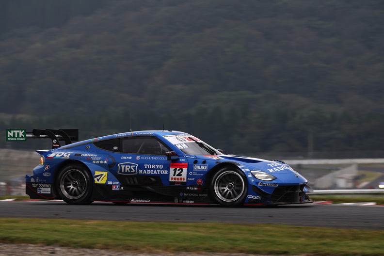 10月19日(日)決勝日、それまで青空がのぞいていた空には厚い雲が広がり、後に降雨の予報もあるなか、決勝レースを迎えました。午後1時10分、気温22度、路面温度25度のコンディションで、2周のフォーメーションラップがスタートし、3時間の決勝が始まりました。フロントロウからスタートした#3 Zの佐々木と#23 Zの高星はそのポジションを守り1-2体制を作り、後続を離してレースをリードします。5番手スタートの#12 Zバゲットは、スタート直後の1コーナーで他車と接触。相手がスピン、コースアウトしたことで#12 Zは4番手にポジションを上げました。これにより9番手スタートの#24 Z松田も8番手となっています。しかし、この接触により#12 Zにドライブスルーのペナルティが科されることになりました。12周目、#24 Zが他車と接触しコースアウト。マシンにダメージを負った#24 Zはリタイアとなりました。このアクシデントでフルコースイエロー(FCY)が発動され、その後セーフティカーが導入されました。後続とのマージンを失うこととなった#3 Zと#23 Zですが、17周目にレースが再開されると、再びペースをあげて1-2体制を築き上げました。#12 Zはレース再開とともにピットインしドライブスルーペナルティを消化し、ポジションを大きく落としています。