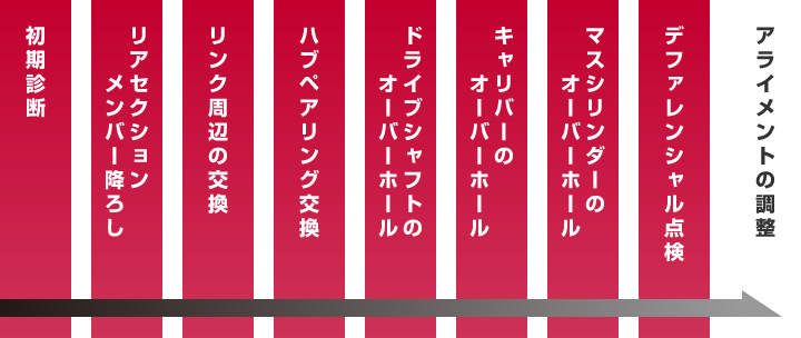 走りに直結する部分なだけに、振動や異音、不規則な動きを感じたら早めの対処が必要となります。