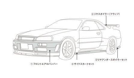 スカイラインGT-R(BNR34)用エアロパーツ